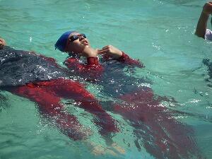 水泳の授業も最後になりました。夏休み、いつ、どんな水難事故が起こるか分かりません。万が一を想定して、海、川で溺れそうになったとき、どのように自分の命を守るか?服を着たまま泳げるのか?体験しました。