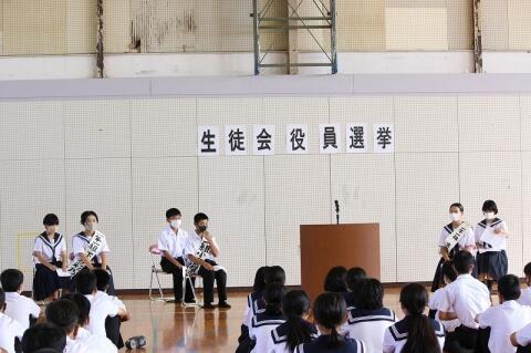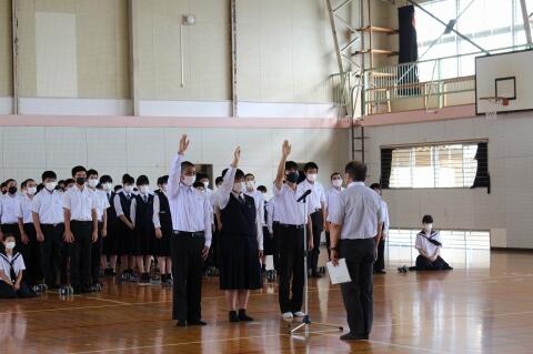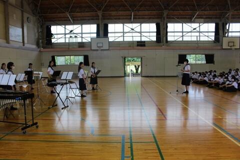 また、本日は6校時終了後に吹奏楽部のコンクールに向けての推戴式が行われました。