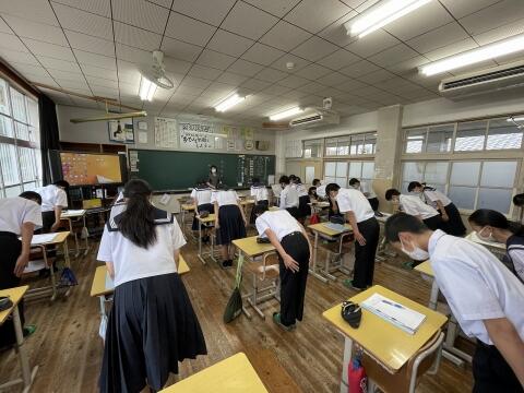 6月17日(金)2年生が礼法指導に取り組みました。都城聖ドミニコ学園高校から1名の先生を講師としてお招きし、礼の仕方、あいさつの作法について学びました。