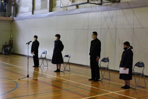 冬休み明け集会では、4名の生徒が新年の抱負を発表しました。
