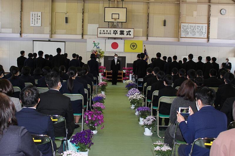 本日は第75回卒業式が行われました。33名の生徒が西小林中学校中学校を巣立って行きました。