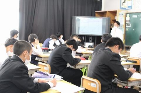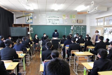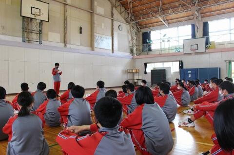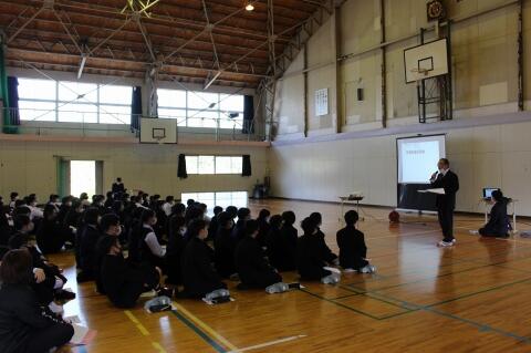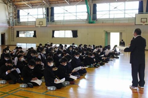 3年生は「進学説明会」を体育館で実施しました。私立高校入試まで100日を切っています。授業や家庭学習に力を緩めることなく頑張ってほしいものです。