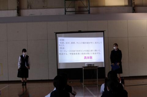 1年生にとっては入学後初めての活動でした。こういった活動を通して、生徒会活動への理解を深めて欲しいと思います。また、どの専門委員会も目標が達成できるよう、全校生徒で頑張りましょう。