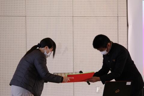 結果発表後、送別行事が行われ1,2年生の代表から3年生への言葉。