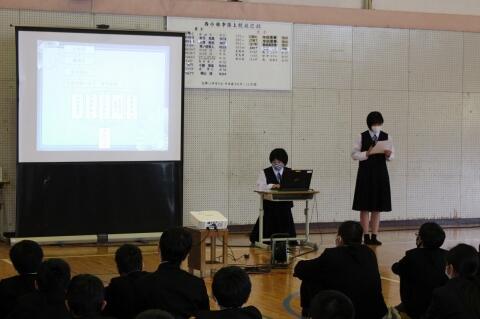 給食委員会からは給食の歴史や給食アンケートの発表がありました。