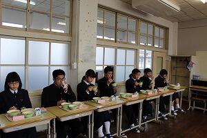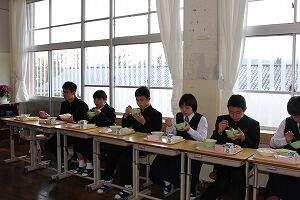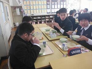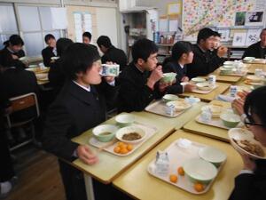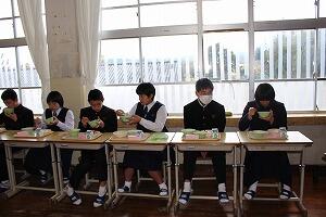 3年生は、今日が義務教育最後の給食でした。この1週間、給食をみんなの顔が見える体型で行ってきました。最後の給食は、おいしかったですか?食べているときの笑顔がすてきです。