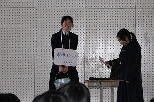 給食委員会は給食感謝週間です。給食を振り返り、栄養のバランスや食材のよさをいかした調理など、給食に関わる方々へ感謝の意を込めて寄せ書き等を送りました。また、給食委員会が食材になりきって寸劇をして、より給食の大切さを訴えました。