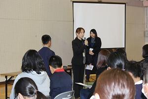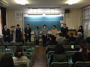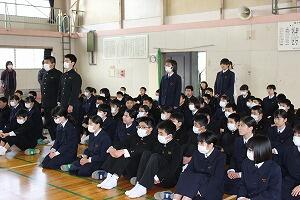 4月に入学してくる西小林小・幸ヶ丘小の児童と保護者の方への説明会を実施しました。説明会の前に、授業風景の見学、生徒会による学校紹介、社会教育からの白帽子の贈呈式が行われました。説明会では、山之口校長を始め、それぞれの担当が学習面及び生徒指導面の説明していきました。事前の質問事項について解答などしていきました。終了後は、部活動見学がありました。児童の皆さんが入学してくるのを楽しみにしています。
