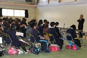 2年生は、将来の夢実現に向けて、どのような進路選択をすればいいのか?現在、西小林中を卒業し、高校生活を送っている先輩の生の声を聞きました。先輩方の話は、興味深く、的確なアドバイスだったようです。