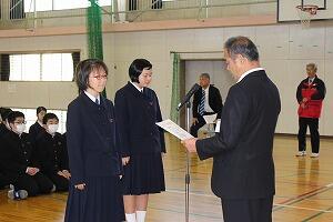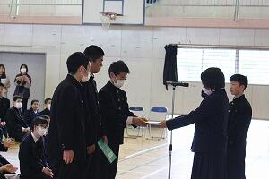明日の卒業式の予行の後、1年間・3年間の皆勤賞の表彰がありました。1年間 11名、3年間 4名元気に登校しました。健康が第一です。