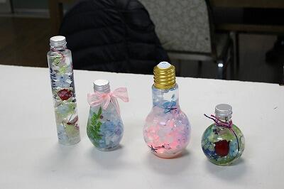 家庭教育学級の閉級式では、本校 栢木教諭による「ハーバリウム」作りを体験しました。ガラスの中に飾り付けをしていきました。みんなきれいに完成しました。その後、年間の活動報告があり、楽しかった1年間を振り返っていました。
