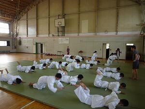 体育では、武道の時間があります。本校では、柔道を選択し、基本から実施しています。1年生は、始めたばかりで、受け身の実技です。初めての体験で、思ったように行きませんでした。
