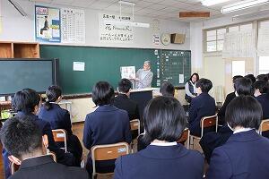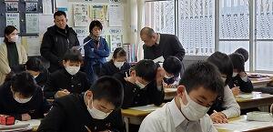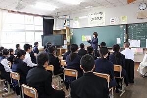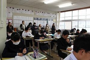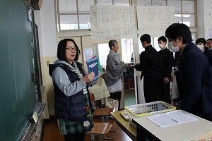 昨年10月より宮崎大学に研修に行っている長野先生が久しぶりに数学科の授業をされました。自身の研修に沿った検証授業で、生徒たちにとって以前と違った授業の流れで戸惑いもあったようですが、時間がたつにつれ和やかな授業になっていました。