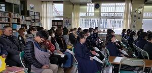本校では、数年前から3月初めにPTA総会を行うようになっています。今年度の活動報告及び決算報告、新旧役員の交代など、議長の大牟田さんの進行でスムーズに議案が承認されました。今回で、PTAの役を終わられる方々に感謝状が贈られ無事に閉幕しました。旧役員の皆さんありがとうございました。新役員の皆さん、1年間お世話になります。