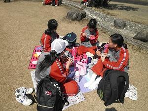 3年生は、県立入試も終わりほっとしています。送別遠足では、十三塚運動公園まで歩いて行き、小学校と合同で送別行事やゲームなどして楽しく過ごしました。また、弁当の日、それぞれがおいしそうな弁当を作ってきていました。