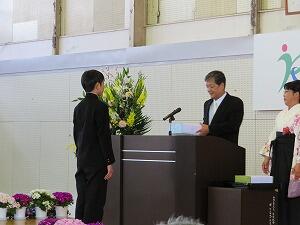 平成30年度 修了式が行われました。3名の代表生徒が1年間の反省とこれからの抱負を述べました。その後、修了証が代表生徒に渡されました。山之口校長より1年間の総括があり、成長した面、もっと頑張らないといけない面の話がありました。最後に、皆勤賞が表彰されました。
