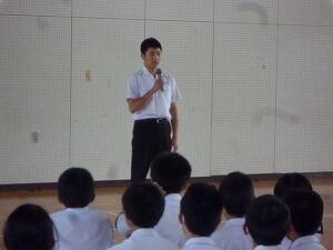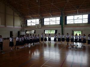 もうすぐ始まる地区中体連に向けて、マナー等の指導がありました。3年生にとっては、負けたら即引退という大会になります。最後に、部活動生会長が、県大会出場を勝ち取ろうとかけ声を掛けました。