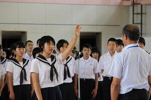 今週の土・日に行われる中体連の選手推戴式が行われました。3年生最後の大会です。実力が出せるように頑張りましょう。