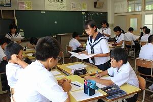 明日(9月27日(木))に行われる西諸県地区英語暗唱・弁論大会に出場する3名が教室でリハーサルをしました。明日は、多くの人の前で発表です。自信をもって、頑張ってくれると思います。