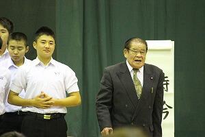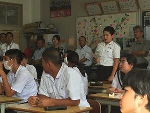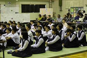 詩吟「桂林荘雑詠諸生に示す」を南薗岳周・南薗岳好夫妻の指導のもと大きな声で発表しました。次に、夏休みにシンガポールにホームステーの体験を発表しました。