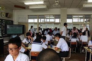 小林市小・中学校社会科担当者及び人権教育担当者等研修会が行われました。研究授業では、2年生の道徳「本当に、あたりまえ?」という題材で授業が行われました。子どもたちは、多くの先生方に囲まれて、少し緊張しているようでしたが自分の考えをたくさん発表していました。