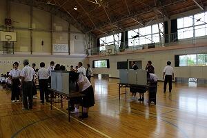 生徒会役員改選にともなう演説会と投票が行われました。演説では、立候補者11名が、公約を発表し、1票をお願いしました。その後、投票が行われ、即日開票されました。新役員が決定し大発表していきます。