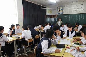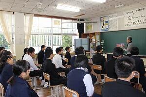 第2回学校運営協議会では、授業参観と給食の試食を計画しました。授業参観では、理科の実験、自立では、パソコンの使い方、体育では、バレーの試合を参観されました。普段見ることのできない授業風景や生徒の表情など興味深く参観されていました。その後、学校の現状(学習面・生活面)など質疑応答があり、問題点等指摘していただきました。今後の取組で改善できればと思います。最後に、給食を食べられました。昔の給食の話で盛り上がりました。