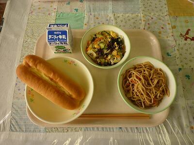 マヨネーズパン&焼きそば&海藻サラダ