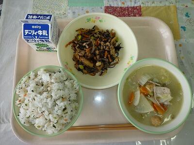 鮭菜めし&豚汁&ひじき炒め