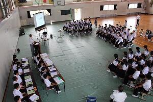 生徒会役員や全校専門部が中心になって、生徒総会が行われました。各専門部の活動方針や予算について、質問等がありました。また、西小林中の課題について、どう取り組んでいけばいいのか、活発な討議が繰り広げられ予定した時間をオーバーしました。決議したことをみんなで実施していき、日本一の学校にしていきましょう。