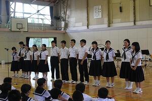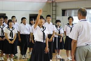 県中学校総合体育大会・県吹奏楽コンクールに出場する生徒への推戴式・激励会が行われました。それぞれが決意表明をし、生徒代表の熊ノ迫翔君が激励の言葉、選手代表として、ソフトテニス部主将 迫奈々恵さんが力強く宣誓しました。練習の成果を発揮してくれるものと信じています。最後に、吹奏楽が演奏を披露しました。