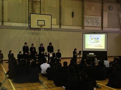 1月24日からの全国学校給食週間に合わせて、給食委員長を中心に給食委員会がプレゼンをしてくれました!給食の歴史や食べ物に関するクイズなど、給食に感謝する気持ちを改めて自覚させてくれました!残食ゼロを目指します!
