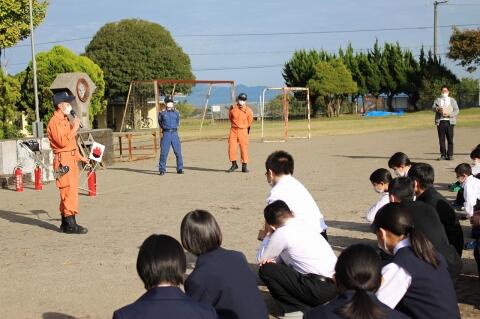 消防署の方からは地震や火災が起きたときは中学生の力が必要であり、すすんでお手伝いしてほしい等のお話がありました。