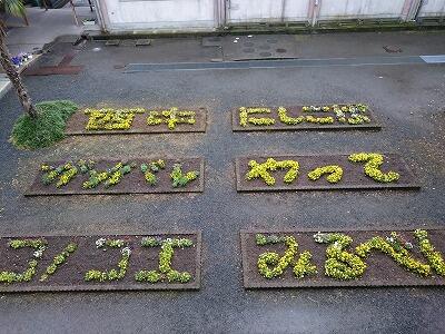 校舎の間にある学級園にお花のメッセージ!何て!こった!!