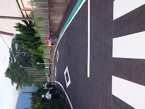 学校東側の道路の補修工事が終わりました。きれいな道路になっています。