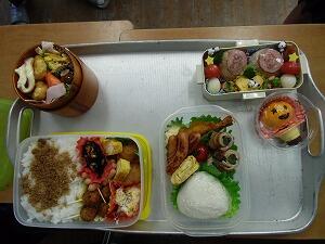 弁当の作り方 主食:主菜:副菜=3:1:2の割合で作ってみよう。みんなおいしそうな弁当ができあがりました。