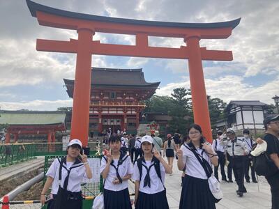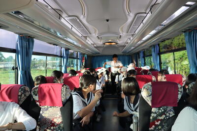 遅れましたが、今朝の出発の様子です。楽しい修学旅行の始まりです。