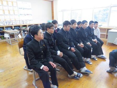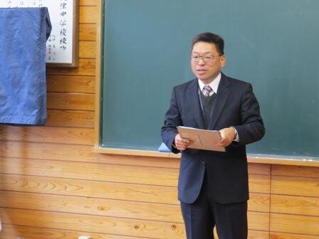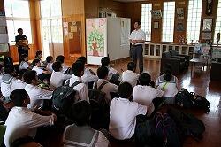 その後、永久津小学校校長先生をお招きして、「のみの話」と題しての講話を受けました。まず「のみ」は上に20㎝、横に41㎝しか飛べないが、10㎝ほどのコップの中に「のみ」を入れ、ガラスふたをすると、いつの間にか「のみ」は、10㎝以上飛べなくなるという実験の説明からでした。これを、どのようにすれば元のように飛べるようになるのか!ということを、人間世界に置き換えて「あきらめ」をいかに無限の可能性を信じて、自分の幸せを見つけていくのか。そして、そのために生きていくことの大切さをお話しされ、学級生全員うなずきながら、大いに感銘を受けました。
