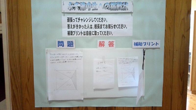 校長からの出題に生徒が挑戦するものです。生徒のチャレンジに期待しています。