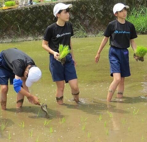 6月23日(金)永久津小学校5年生と本校全生徒で田植体験学習を行いました。営農組合とJA小林の方から植え方等のご指導をいただきながら楽しく活動することができました。10月の稲刈りが楽しみです。収穫したもち米は、餅にして立志式で配付いたします。