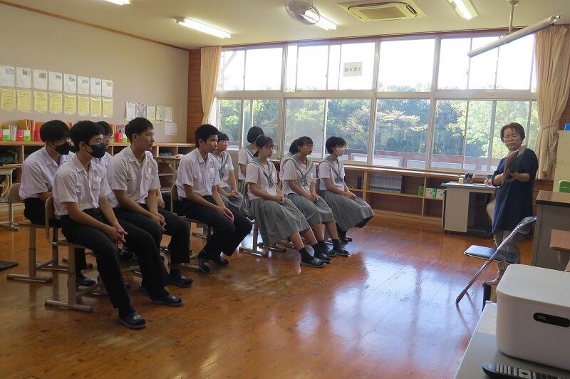 立志式後、長友 まさ美さんを講師に迎え、「ありたい未来の実現」と題して、講話をしていただきました。将来の予測が困難な時代にあって、「学び続ける」「問い続ける」ことの大切さを知る機会となりました。