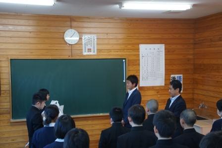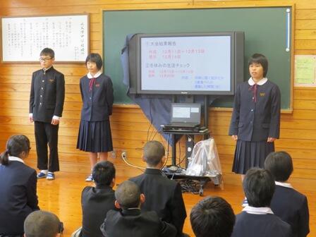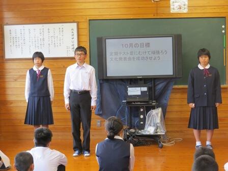 生徒会長が話をした後、新専門委員長が先月の反省と
