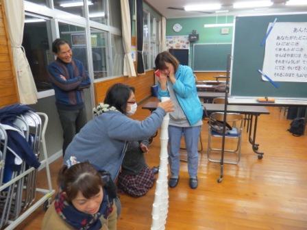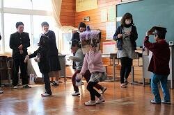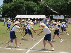 今年度、永久津地区の教育振興会の方々にご尽力を賜り、永久津地区総ぐるみ地区団技を実施しました。50歳代、60歳代の地区の方々を中心にでかパンでGO!とボール渡しを複合した団技を3ブロックに分けて、実施しました。永久津小中学校を支えてくださる地区の方々に感謝申し上げます。