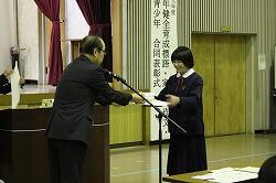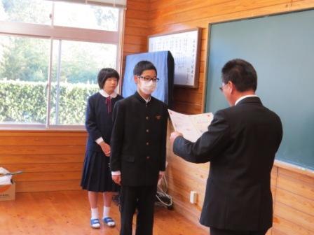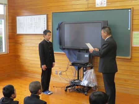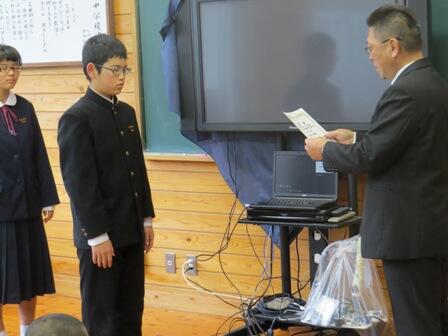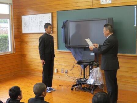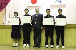 市内小中学校から51名が表彰されました。本校から、1年生男子が、