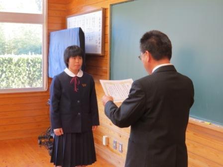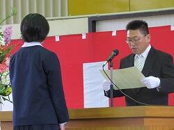 本日は第72回目の入学式が行われました。新入生9名は緊張した面持ちの中でも気体に満ちた表情で明日からの登校を楽しみにしているようです。新入生誓いの言葉では神之薗寿一君が中学生としての抱負を堂々と述べ、頑張っていく決意を見せてくれました。