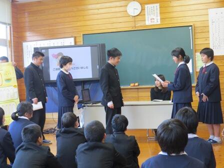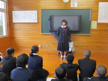 先日、生徒会引継式が行われ、新体制で初めての集会でした。