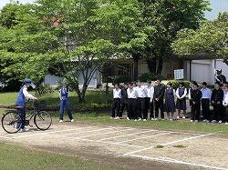 本日は小林警察署より交通安全指導が行われました。自転車に乗るうえでの注意点としてまずは自転車の整備をしっかりとしておくこと、走行する際は周囲をしっかりと確認すること、反射板を付けること等を確認しました。運動場での走行では安全に関するアドバイスをいただき、生徒たちの意識も高まったようです。