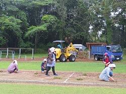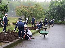 本日、5月13日(日)小雨が降る中、総数65名が参加しての第1回奉仕作業が行われました。生徒も全員参加して、先生方と共に学級花壇の草抜きや切り落とした枝や草などの後片付けをしました。お母さん方は、運動場トラック内の草抜き、お父さん方は、草刈りや、枝払い、重機による枝や草の処理など、役割分担がしっかりできていました。おかげさまで、校舎内外がすっきりし、きれいになりました。これで、20日(日)に行われる小中合同春季運動会の明日からの練習に生徒も一生懸命取り組める環境となりました。