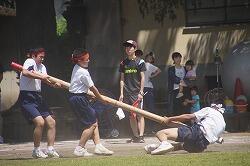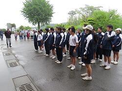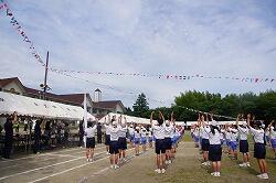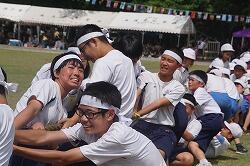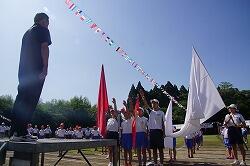 本日は朝、中学生は小学校に集合し、8:15より小中合同の運動会結団式を行いました。小学校の校長先生のあいさつに始まり、実行委員長のあいさつの後、団対抗のフラフープくぐりを行い、団色を決定しました。後半は団長、リーダーの紹介と決意表明、団担当の先生の自己紹介、各団の応援の練習などを行いました。各団の応援はどちらも大いに盛り上がり、中学生のリーダーシップにより初めて参加した小学校1年生の児童達にも頼もしく見えただろうと思います。