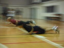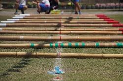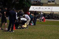 今年度からPTAの地区をA(岡原・黒仁田・永久井野・坂下・保楊枝原)、B(深草・西永久津・曙・森吹・上永久津)、C(永久津・永久津団地)、D(三親)の4ブロックになり、PTA活動が行われています。まず、ラグビーボールを25m1人で蹴り進み(4名でつなぎ)、次は、ラグビーボールをバスケットリングに入れて、同じく4名でつなぎ、最後は、男性陣による障害物競走(袋飛び、梯子くぐり、チューブ通し、網くぐり)で、同じく4名でつなぐ団技でした。それぞれ、悪戦苦闘する中、栄えある優勝は、B地区ブロックとなりました。総勢48名の保護者による熱戦が繰り広げられました。ありがとうございました。